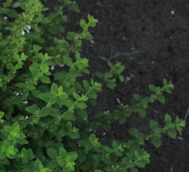 Čiobrelių lova, ar kilimas, yra kvapiojo gėlyno centre. Čia galima užlipti, prigulti ar net nusnūsti.