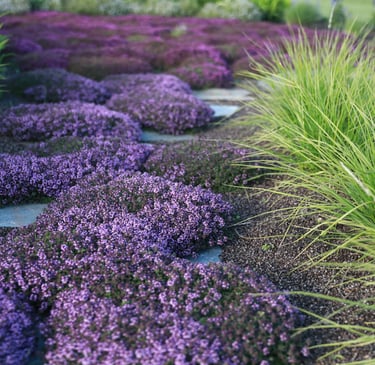 Kaip atsirado čiobrelių lova? Istorija tokia, kad prieš pradedant kurti Saulėtas Lankas auginau 5 skirtingų rūšių čiobrelius. Kasdien juos stebėdama pajaučiau, kad turbūt tai mano labiausiai glostomas ir lankomas augalas dėl savo išskirtinio kvapo, smulkumo ir milijono žiedelių, kuriuos lanko bitės ir drugeliai. Vienas iš turimų čiobrelių formavo labai gražų kilimą. Tai buvo čiobrelis vardu 'Coccineus'. Vieną dieną, sėdėdama saulėtoje terasoje ir gerdama arbatą pagalvojau, kad nuostabiai atrodytų čiobrelių jūra ir pabandžiau įsivaizduoti save apsuptą tais kvepiančiais žiedeliais. Ta mintis ir nuvedė mane į tai, kad galėčiau turėti čiobrelių lovą, kurioje galėčiau mėgautis tuo užburiančiu aromatu.