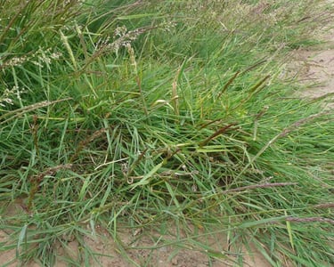 Paprastoji kietavarpė (Cynosurus cristatus). Mėgsta sausesnes, bet ne per sausas vietas, nepakenčia užmirkimo ir netoleruoja pavėsio. Tai žema žolė, kurios lapų pagrindą sudaro plokšti, lygūs lapai. Jie užpildo kitų žolių, augančių vejoje, apačią. Ši žolė nėra ilgaamžė, todėl jai būtina leistii išbarstyti sėklas. Geriausia būtų ją naudoti žydinčių pievų mišiniuose.